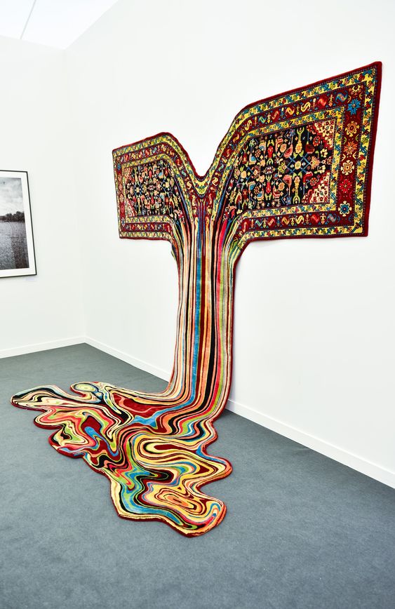 J'ai préféré celui du tableau avec le tapis qui fondait. Je ne pourrais pas exactement dire pourquoi, mais je trouvais ça satisfaisant de regarder cette art. Quand elle nous a expliqué brièvement son sens, je ne l'avait pas tout à fait imaginé comme cela, mais j'ai quand même beaucoup apprécié. Les couleurs (qui me faisait penser à l'Inde), l'effets miroir qui fondait comme une chute d'eau, étaient très bien choisis.