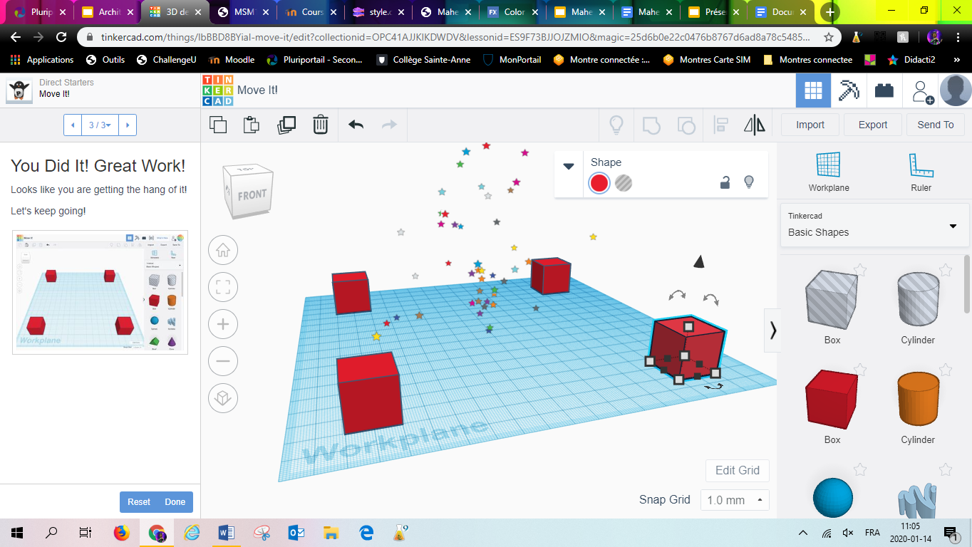 On a du faire 6 exercices sur Thinkercade pour se préparer et s’habituer. Également, un monsieur est venu nous donner des astuces pendant le cours du 3 février. Cela m'a aidé à mieux comprendre (avec l'exemple visuel) cette surface. De plus, pendant les pratiques les instructions étaient en Anglais donc je n'avais pas tout à fait tout compris. Dans mon cas, je dois faire le personnage qui va être imprimé en 3D. Donc ensuite, le monsieur nous a montré d'autres trucs. Et j'ai commencé avec l'aide d'un camarade de classe, la première jambe.